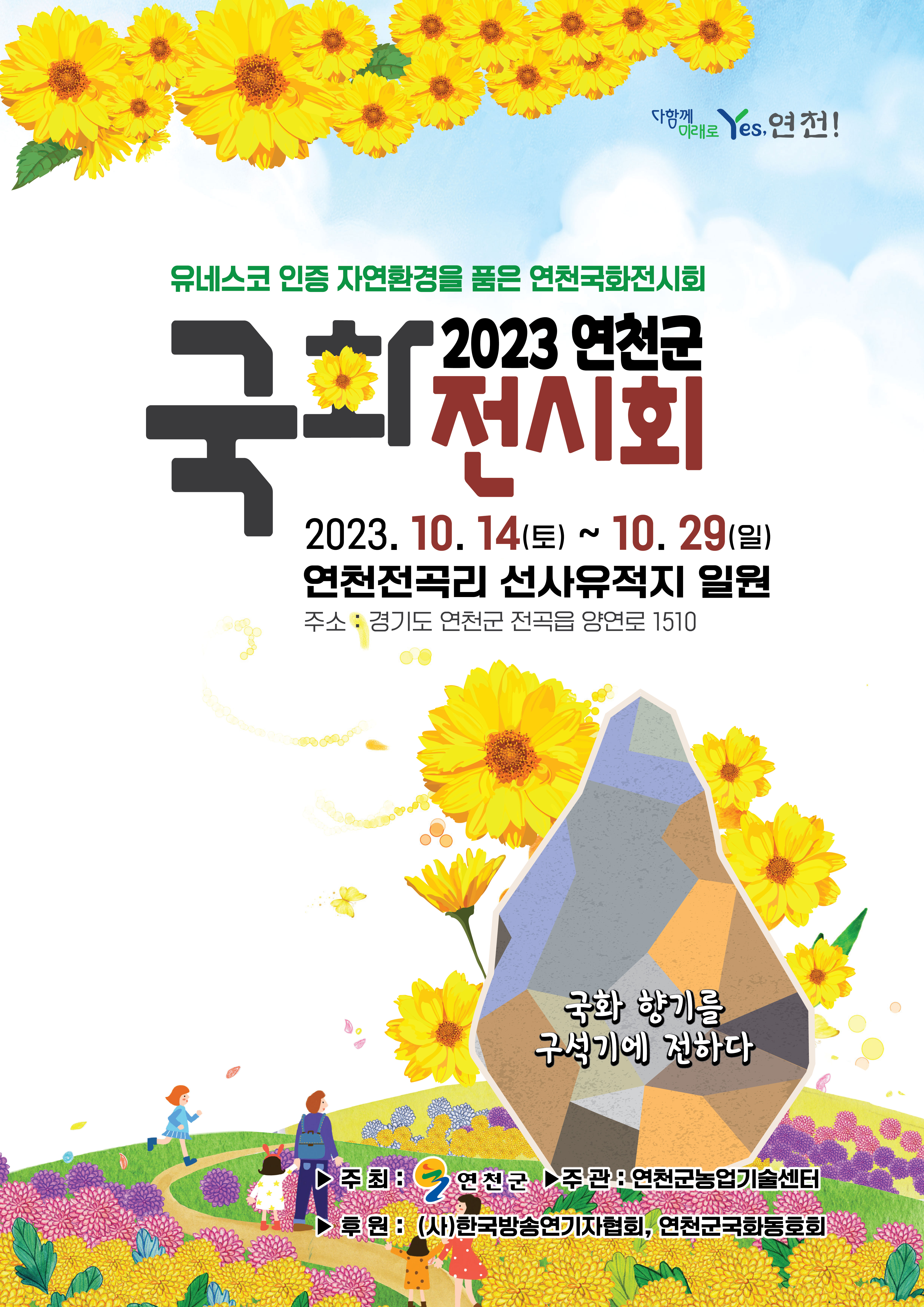 10월은 유네스코가 인증한 자연환경을 품은 연천으로 놀러오면 국화꽃향기가 가득한 전곡 선사유적지를 만날 수 있다. 국화꽃으로 물들인 커다란 꽃조형물, 자태가 아름다운 국화분재와 드넓은 국화정원을 관람할 수 있고 제철 농산물을 구입할 수 있는 장터와 먹거리, 주말은 눈과 귀를 즐겁게 해주는 공연이 준비되어 있다. 올해 입장 및 관람은 무료