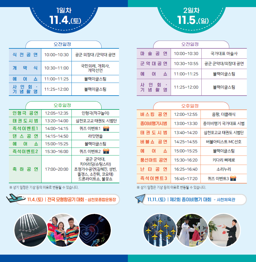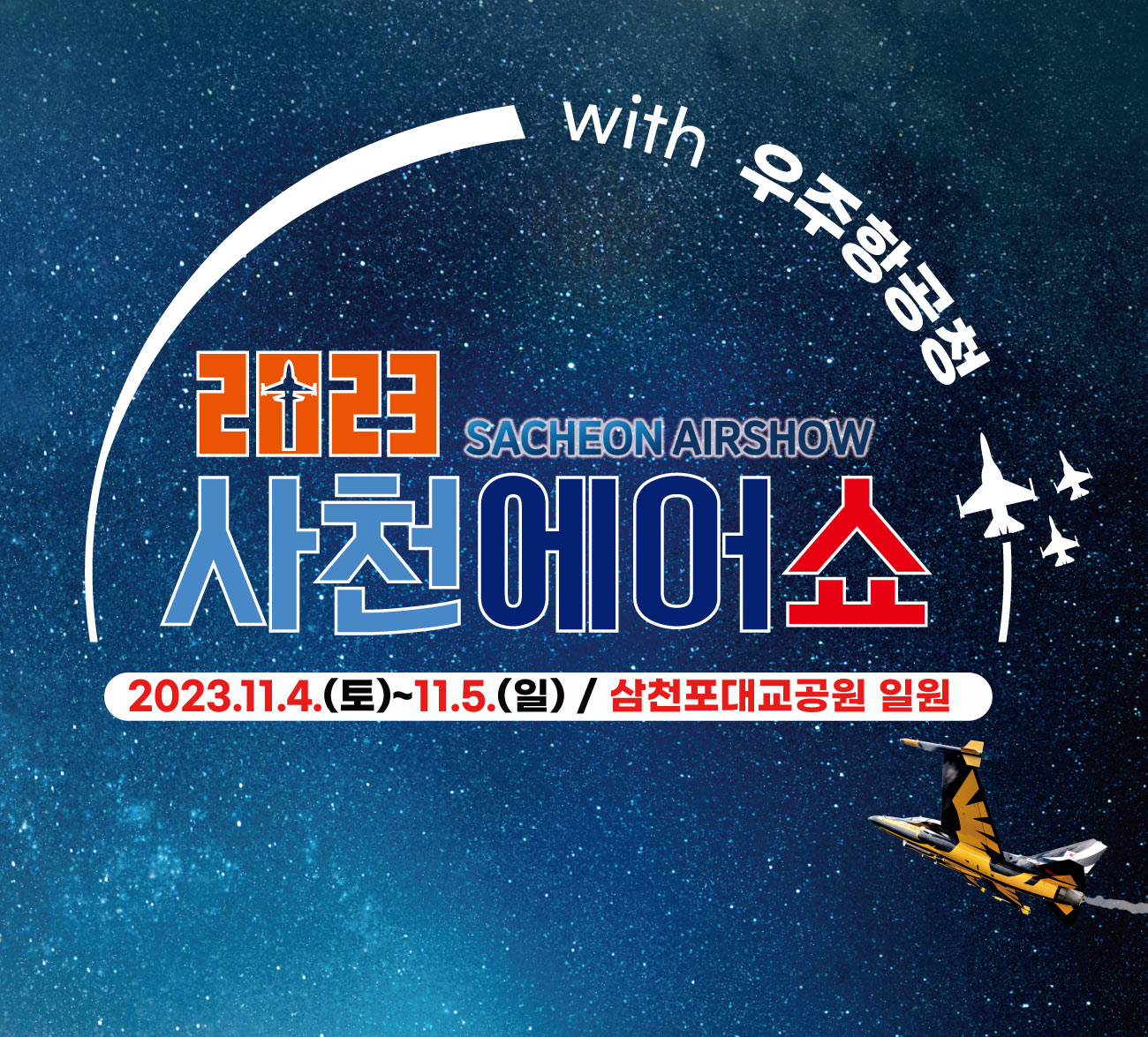 항공산업 중심도시 사천시에서 "2023 사천에어쇼"가 열립니다. 대한민국공군, 경상남도, 사천시, 한국항공우주산업(주)이 공동으로 주최하는