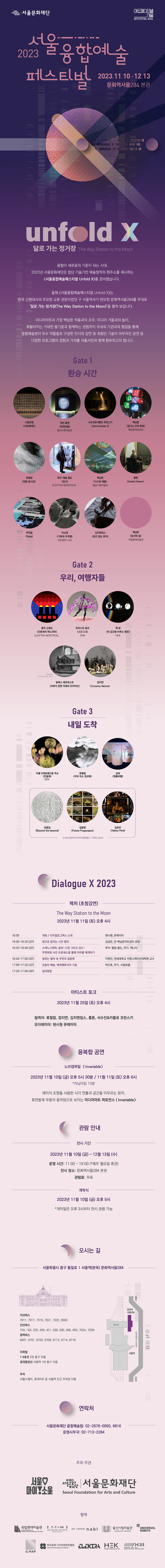 융합이 새로움의 기준이 되는 시대, 2023년 서울문화재단은 첨단 기술기반 예술창작의 현주소를 제시하는 《서울융합예술페스티벌 언폴드엑스(Unfold X)》를 선보입니다.
