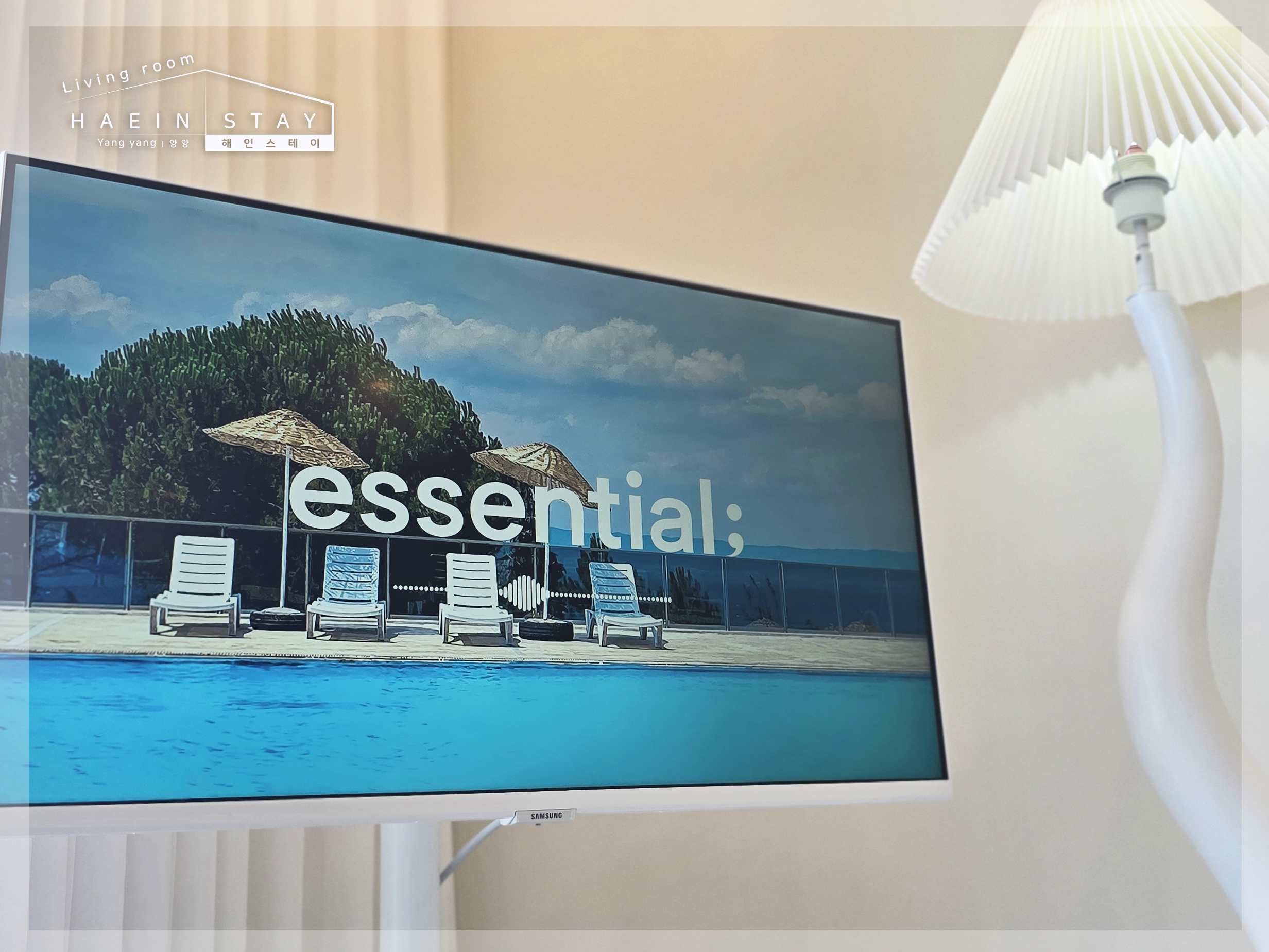 빔프로젝트(100인치)와 이동식 삼텐바이미 TV가 있어서 각종 OTT를 감상할수 있어서 좋아요.