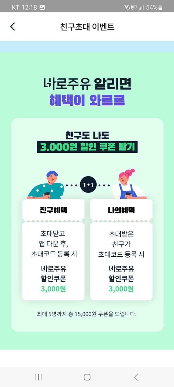 지인분들에게도 초대하면 서로서로 3,000원 쿠폰이 또 생기고요.