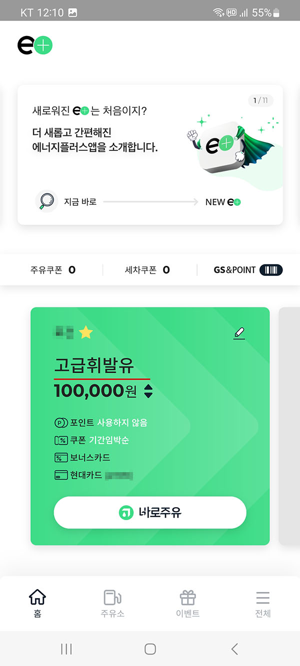 에너지플러스 앱 바로주유 GS칼텍스 보너스카드변경 GS&point 주유쿠폰 주유포인트적립 주유소 가스충전소 EV 전기충전소 찾기