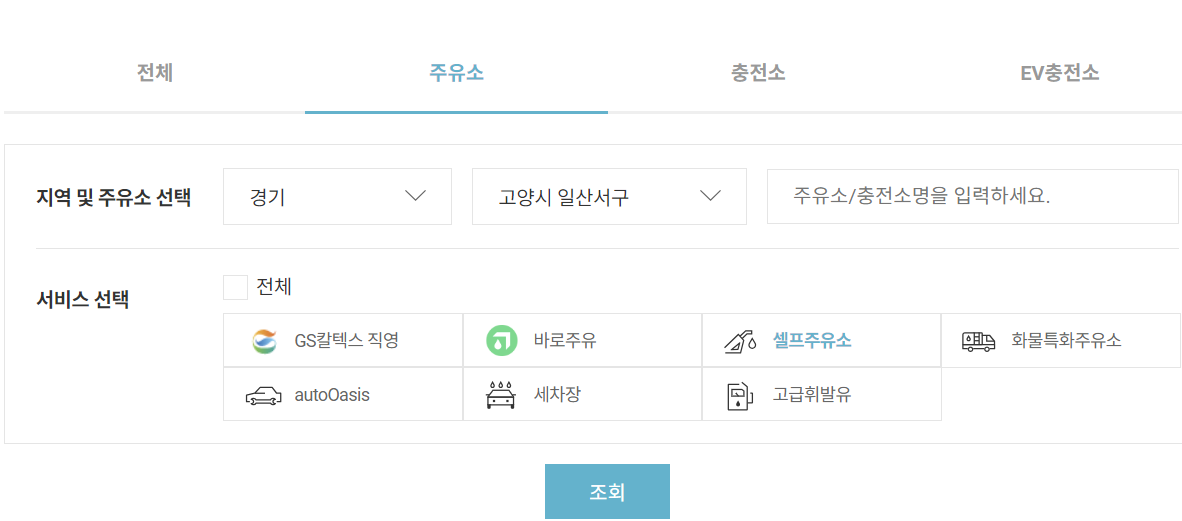 GS칼텍스직영 / 바로주유 / 셀프주유소 / 화물특화주유소 / 고급휘발유 /