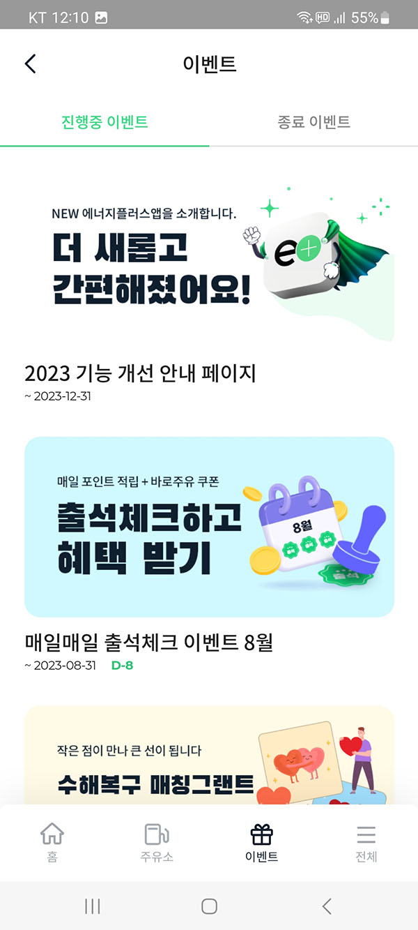 ★이벤트 탭을 누르면 출석체크 / 주유할인쿠폰 / 친구초대 등 다양한 이벤트가 있습니다.