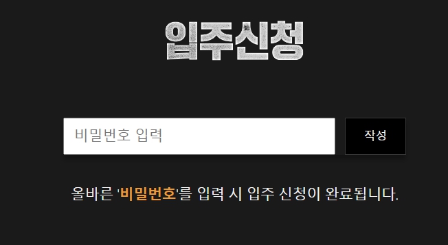 입주신청페이지에 비번입력란에 6자리의 암호를 입력하면 됩니다.!