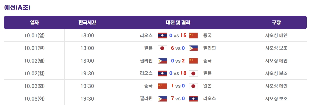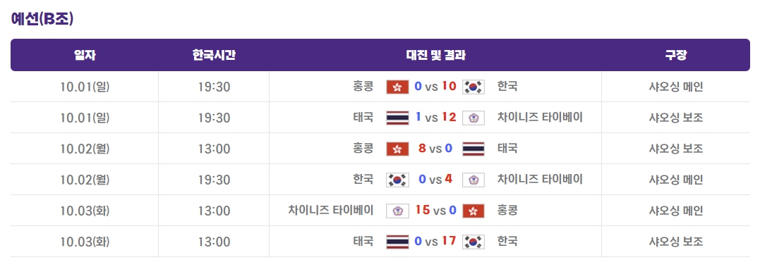 제19회 항저우 아시안게임 야구 결승라운드 대한민국 : 대만 실시간 보러가기