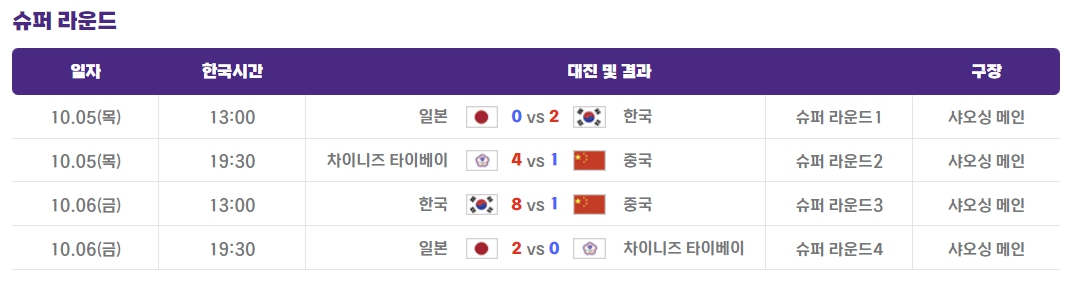 제19회 항저우 아시안게임 야구 슈퍼라운드 대한민국 : 일본 실시간 보러가기