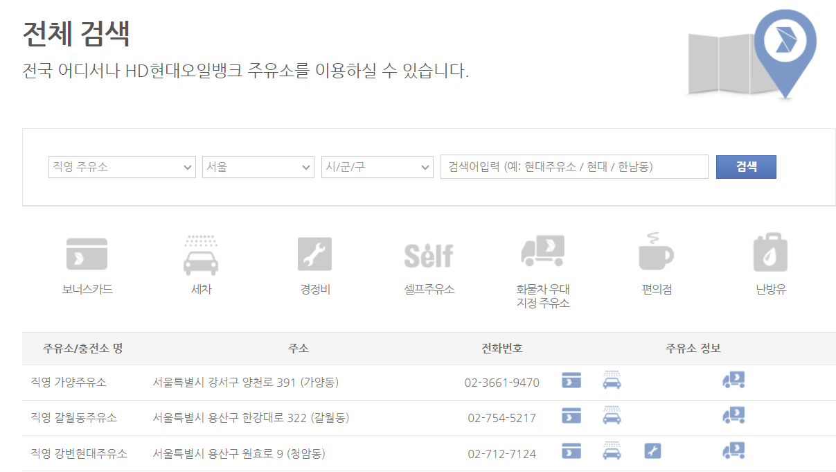 현대오일뱅크 전국 고급휘발유 취급점 검색