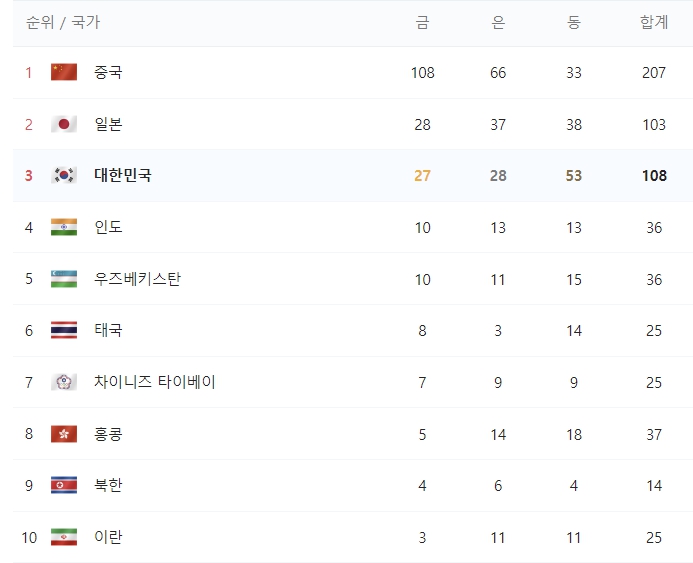대한민국 종합 3위 <230930 현재>