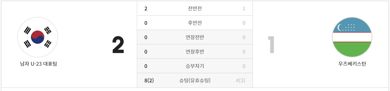 축구 남자 준결승전 대한민국 : 우즈베키스탄