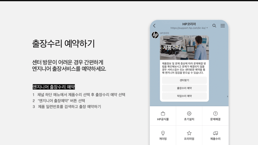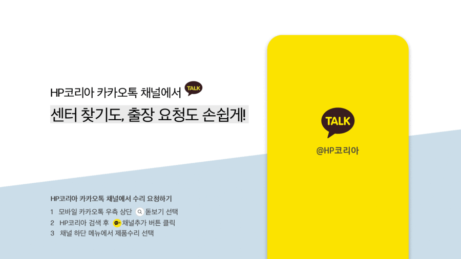 HP코리아 카카오톡 채널에서 센터 찾기도,