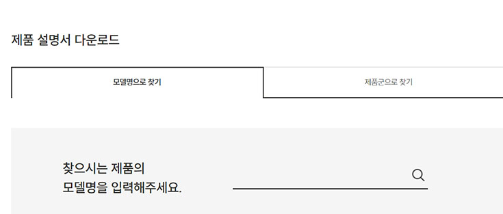 모델명으로 찾기 / 제품군으로 찾기가 있습니다.